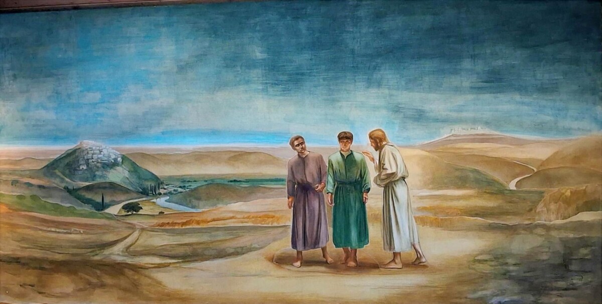Ed ecco, in quello stesso giorno [il primo della settimana] due dei [discepoli] erano in cammino per un villaggio di nome Èmmaus, distante circa undici chilometri da Gerusalemme, e conversavano tra loro di tutto quello che era accaduto. Mentre conversavano e discutevano insieme, Gesù in persona si avvicinò e camminava con loro. Ma i loro occhi erano impediti a riconoscerlo. Ed egli disse loro: «Che cosa sono questi discorsi che state facendo tra voi lungo il cammino?». Si fermarono, col volto triste; uno di loro, di nome Clèopa, gli rispose: «Solo tu sei forestiero a Gerusalemme! Non sai ciò che vi è accaduto in questi giorni?». Domandò loro: «Che cosa?». Gli risposero: «Ciò che riguarda Gesù, il Nazareno, che fu profeta potente in opere e in parole, davanti a Dio e a tutto il popolo; come i capi dei sacerdoti e le nostre autorità lo hanno consegnato per farlo condannare a morte e lo hanno crocifisso. Noi speravamo che egli fosse colui che avrebbe liberato Israele; con tutto ciò, sono passati tre giorni da quando queste cose sono accadute. Ma alcune donne, delle nostre, ci hanno sconvolti; si sono recate al mattino alla tomba e, non avendo trovato il suo corpo, sono venute a dirci di aver avuto anche una visione di angeli, i quali affermano che egli è vivo. Alcuni dei nostri sono andati alla tomba e hanno trovato come avevano detto le donne, ma lui non l’hanno visto». Disse loro: «Stolti e lenti di cuore a credere in tutto ciò che hanno detto i profeti! Non bisognava che il Cristo patisse queste sofferenze per entrare nella sua gloria?». E, cominciando da Mosè e da tutti i profeti, spiegò loro in tutte le Scritture ciò che si riferiva a lui. Quando furono vicini al villaggio dove erano diretti, egli fece come se dovesse andare più lontano. Ma essi insistettero: «Resta con noi, perché si fa sera e il giorno è ormai al tramonto». Egli entrò per rimanere con loro. Quando fu a tavola con loro, prese il pane, recitò la benedizione, lo spezzò e lo diede loro. Allora si aprirono loro gli occhi e lo riconobbero. Ma egli sparì dalla loro vista. Ed essi dissero l’un l’altro: «Non ardeva forse in noi il nostro cuore mentre egli conversava con noi lungo la via, quando ci spiegava le Scritture?». Partirono senza indugio e fecero ritorno a Gerusalemme, dove trovarono riuniti gli Undici e gli altri che erano con loro, i quali dicevano: «Davvero il Signore è risorto ed è apparso a Simone!». Ed essi narravano ciò che era accaduto lungo la via e come l’avevano riconosciuto nello spezzare il pane. (Lc 24,13-35)